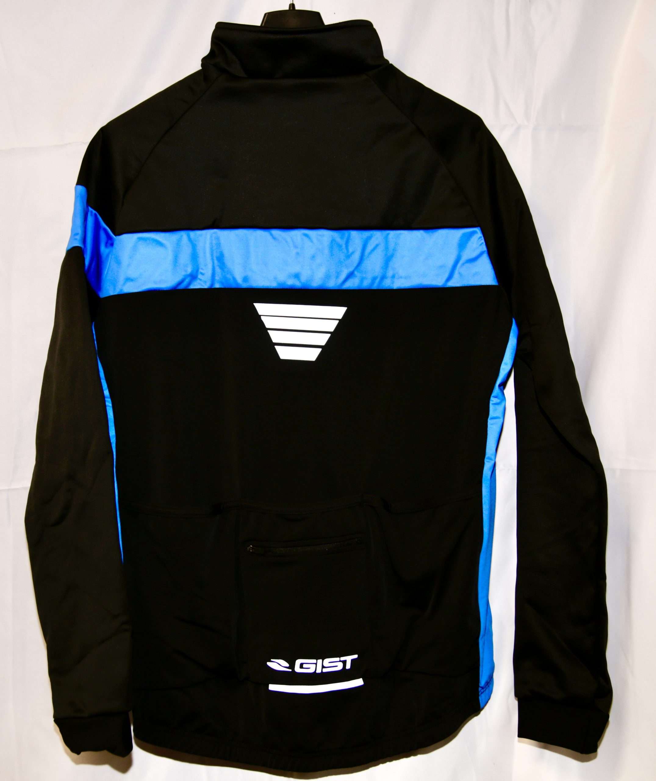 Giubbino invernale con parte anteriore in membrana antivento e anti acqua, elasticità per agevolare i movimenti durante la pedalata, doppio polsino per un maggior comfort, tasche e inserti in reflex posteriori.